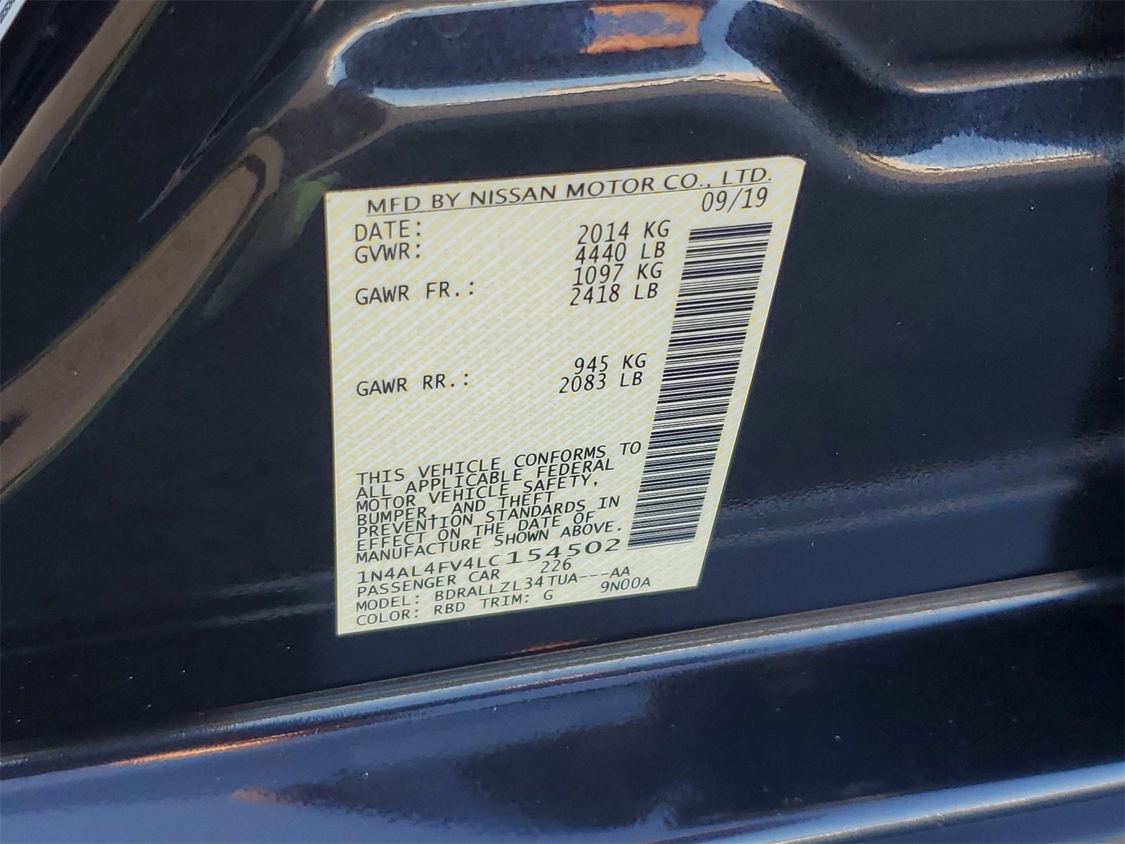 Ford Blue Advantage: Blue Certified Certified, CVT with Xtronic, 19 Alloy Wheels, 4-Wheel Disc Brakes, 9 Speakers, ABS brakes, Air Conditioning, Alloy wheels, AM/FM radio: SiriusXM, Auto High-beam Headlights, Auto-dimming Rear-View mirror, Automatic temperature control, Blind Spot Warning, Body-Colored Splash Guards, Brake assist, Bumpers: body-color, Chrome Bumper Protector, Compass, Delay-off headlights, Driver door bin, Driver vanity mirror, Dual front impact airbags, Dual front side impact airbags, Electronic Stability Control, Emergency communication system: NissanConnect Services, Floor Mats/Trunk Mat/Hideaway Net, Four wheel independent suspension, Front anti-roll bar, Front Bucket Seats, Front Center Armrest, Front dual zone A/C, Front fog lights, Front reading lights, Fully automatic headlights, Garage door transmitter: HomeLink, Heated door mirrors, Heated Front Bucket Seats, Heated front seats, Heated steering wheel, Illuminated entry, Illuminated Kick Plates, Knee airbag, Leather Shift Knob, Leather-Appointed Seat Trim, Low tire pressure warning, Memory seat, Navigation System, NissanConnect featuring Apple CarPlay and Android Auto, Occupant sensing airbag, Outside temperature display, Overhead airbag, Overhead console, Panic alarm, Passenger door bin, Passenger vanity mirror, Power door mirrors, Power driver seat, Power moonroof, Power passenger seat, Power steering, Power windows, Radio data system, Radio: AM/FM/HD w/Bose Premium Sound System, Rear anti-roll bar, Rear Parking Sensors, Rear reading lights, Rear seat center armrest, Rear side impact airbag, Rear window defroster, Remote keyless entry, Security system, Speed control, Speed-sensing steering, Speed-Sensitive Wipers, Split folding rear seat, Sport steering wheel, Steering wheel mounted audio controls, Tachometer, Telescoping steering wheel, Tilt steering wheel, Traction control, Trip computer, Turn signal indicator mirrors, Variably intermittent wipers, CVT with Xtronic.
