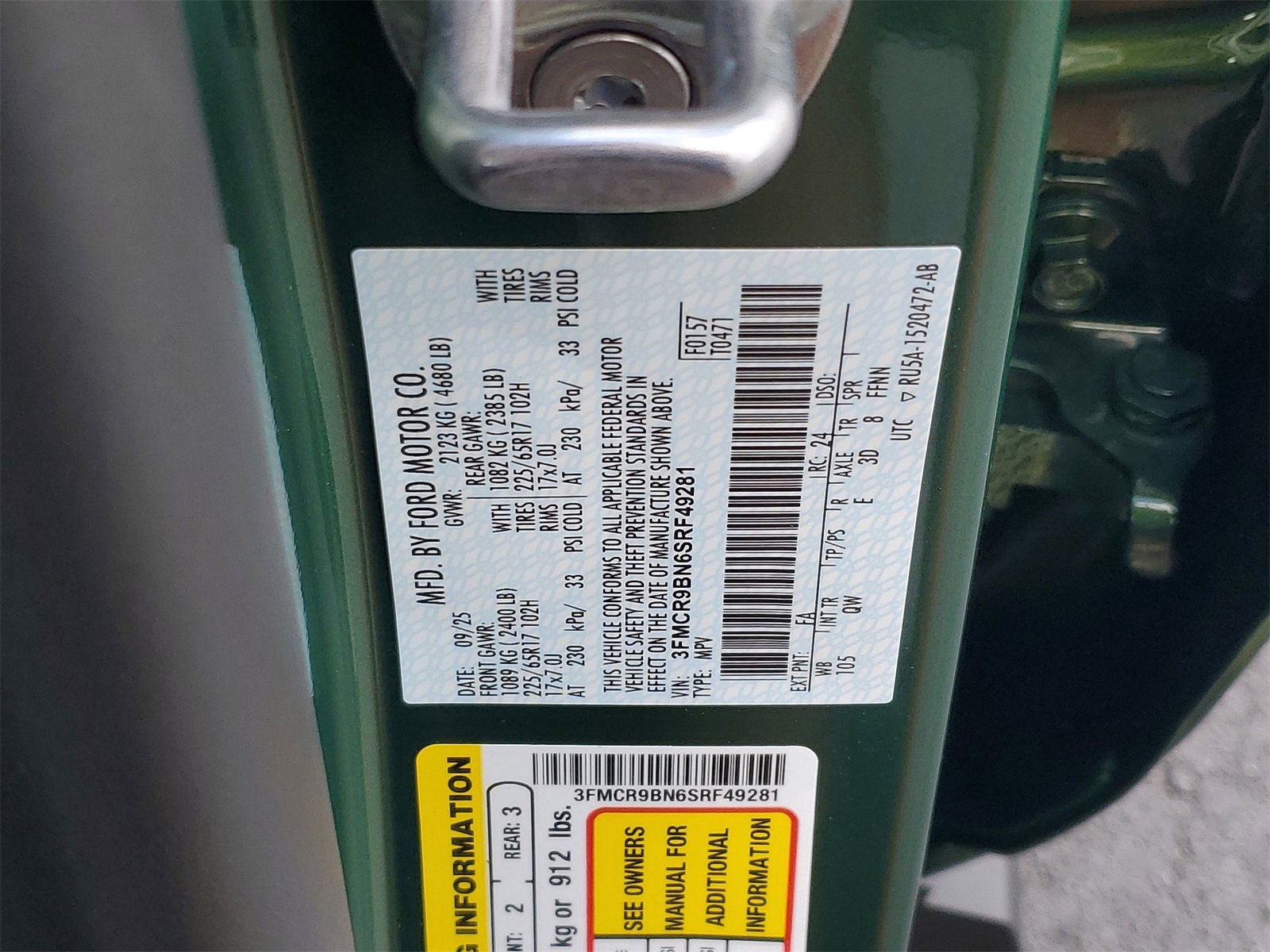 Eruption Green Metallic 2025 Ford Bronco Sport Big Bend 4WD 8-Speed Automatic 1.5L EcoBoost
