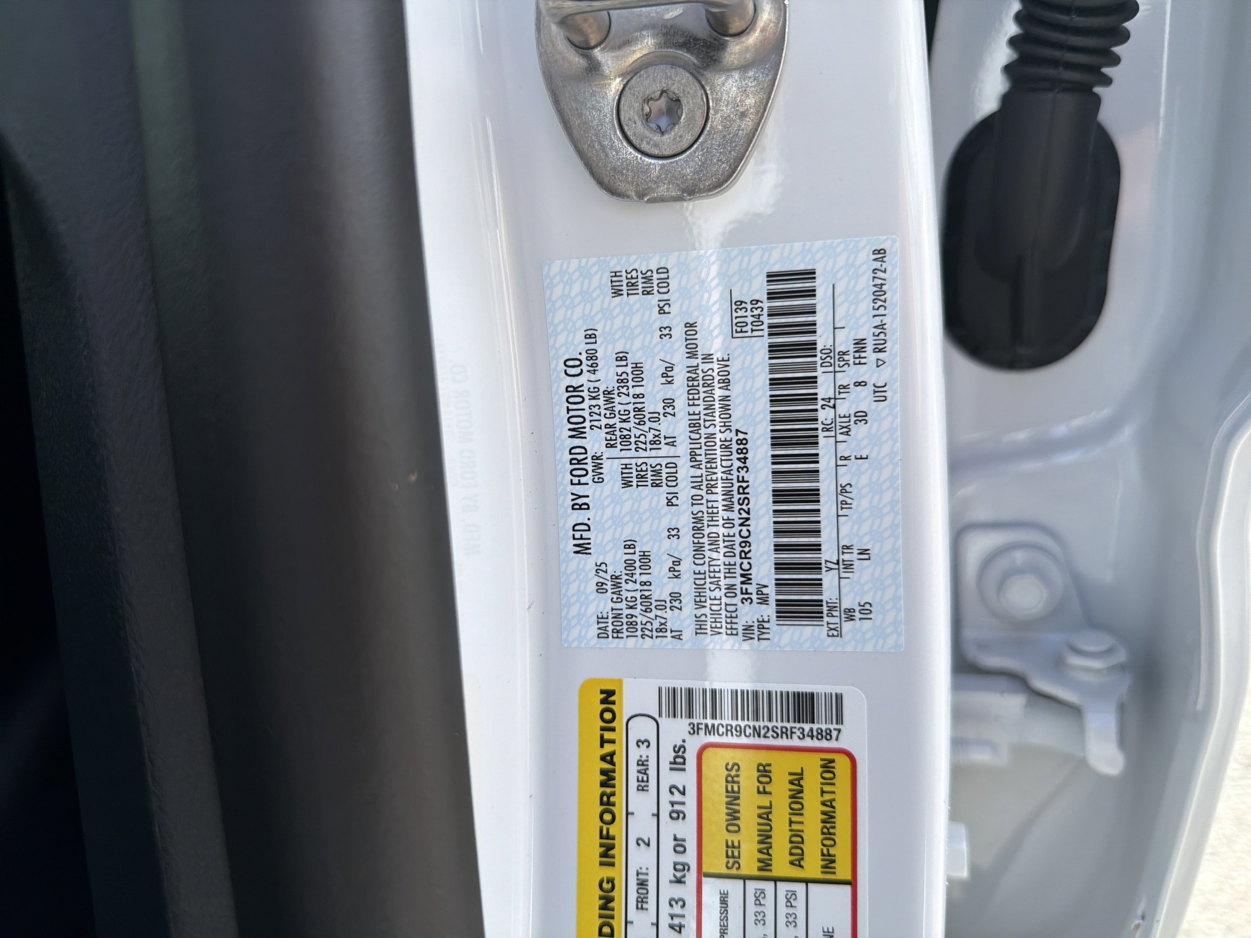 • VIN # 3FMCR9CN2SRF34887