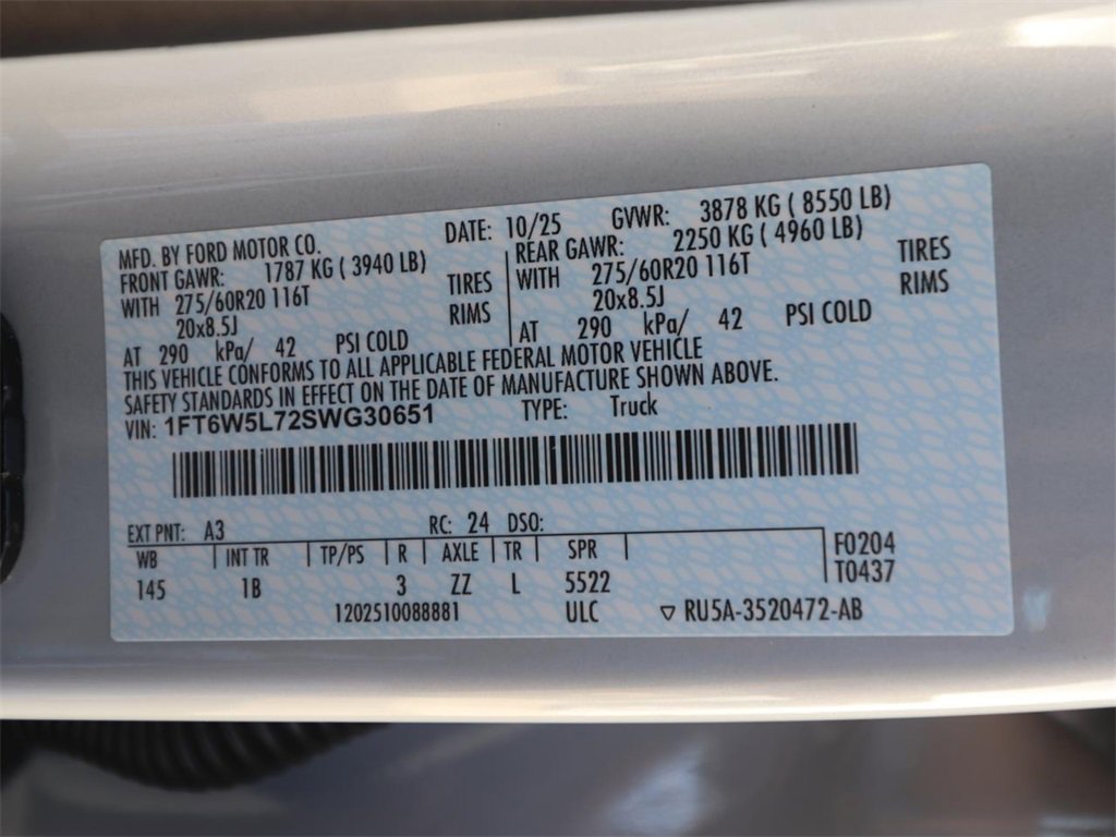 • VIN # 1FT6W5L72SWG30651