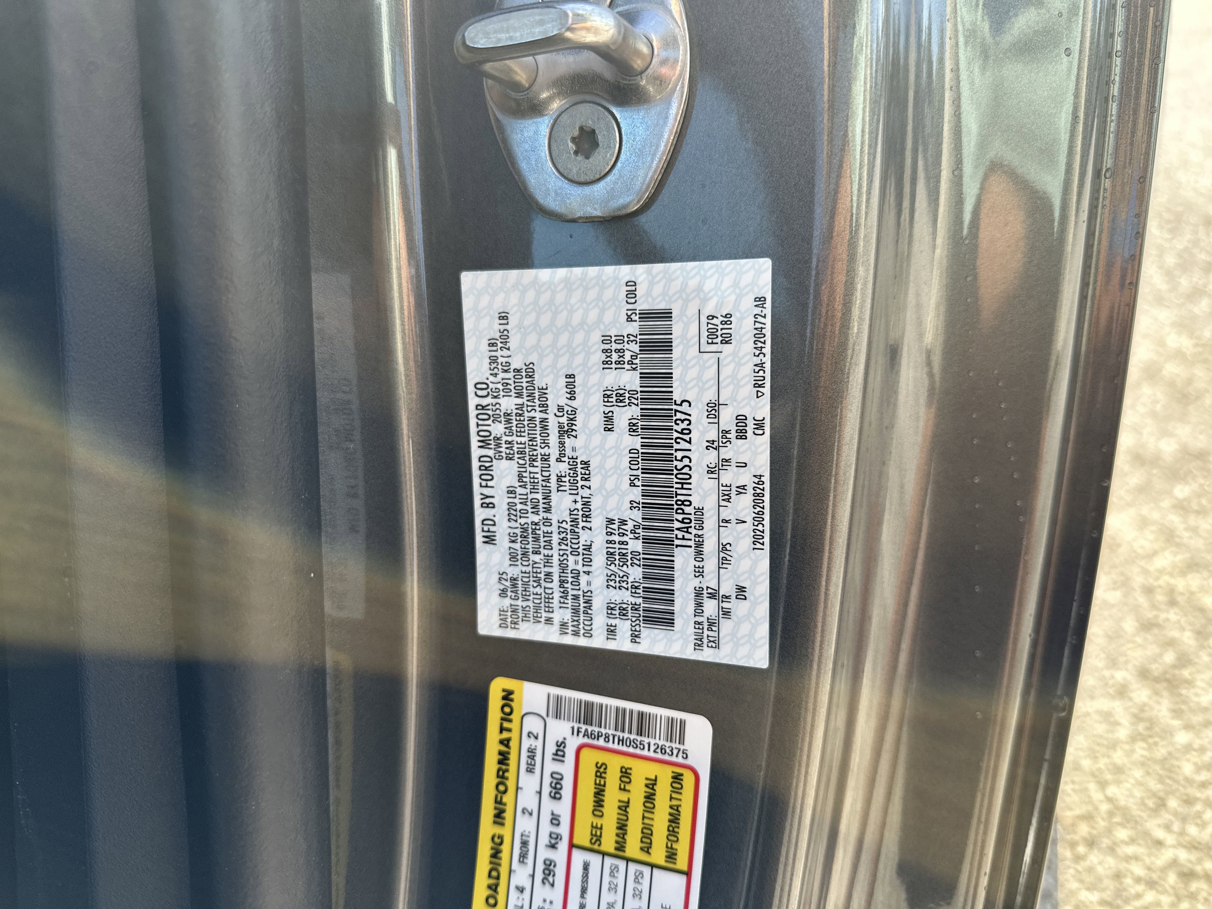 • VIN # 1FA6P8TH0S5126375