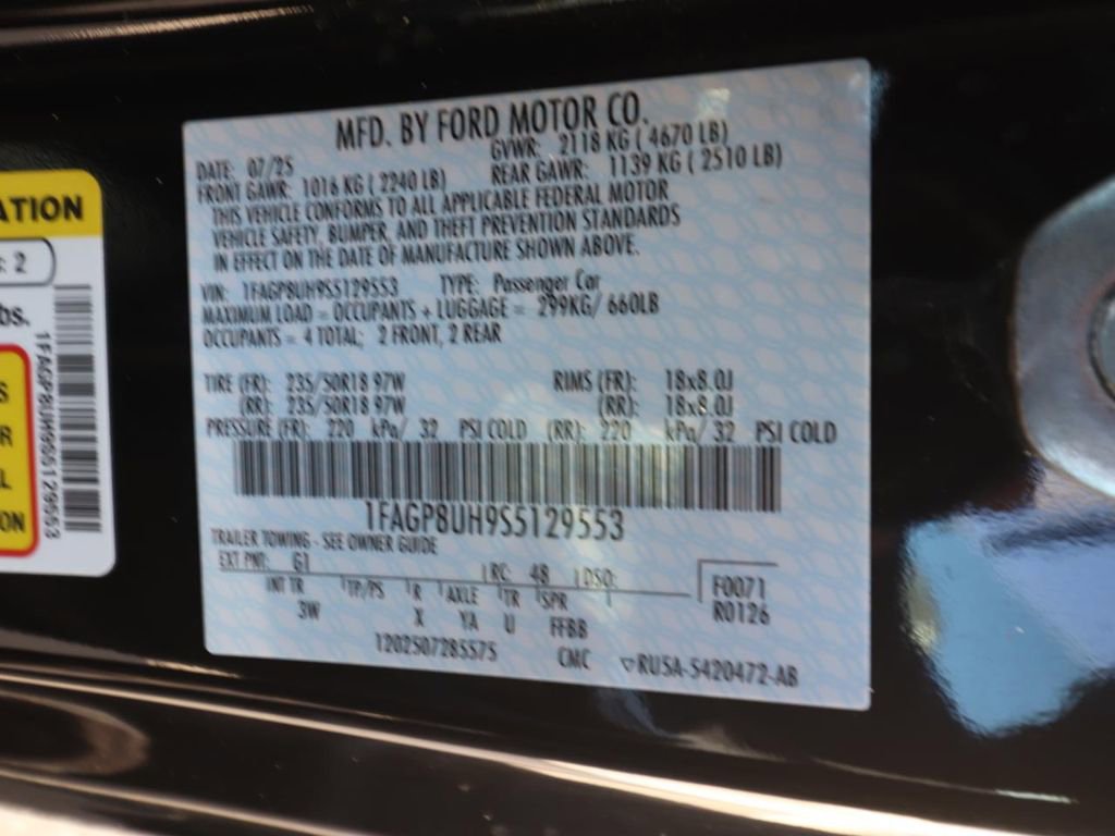 Shadow Black 2025 Ford Mustang EcoBoost Premium RWD 10-Speed Automatic EcoBoost 2.3L I4 GTDi DOHC Turbocharged VCT
