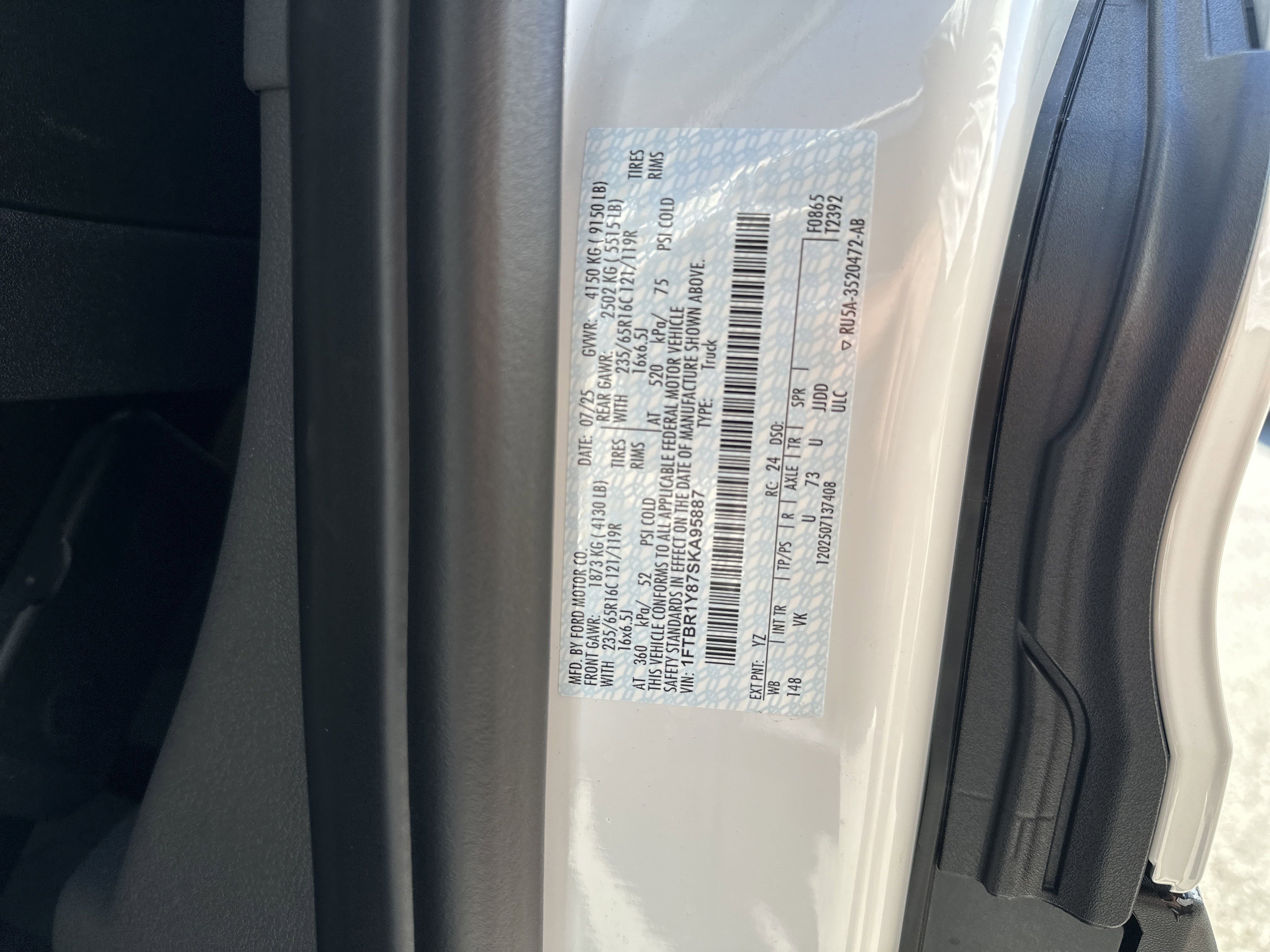 • VIN # 1FTBR1Y87SKA95887