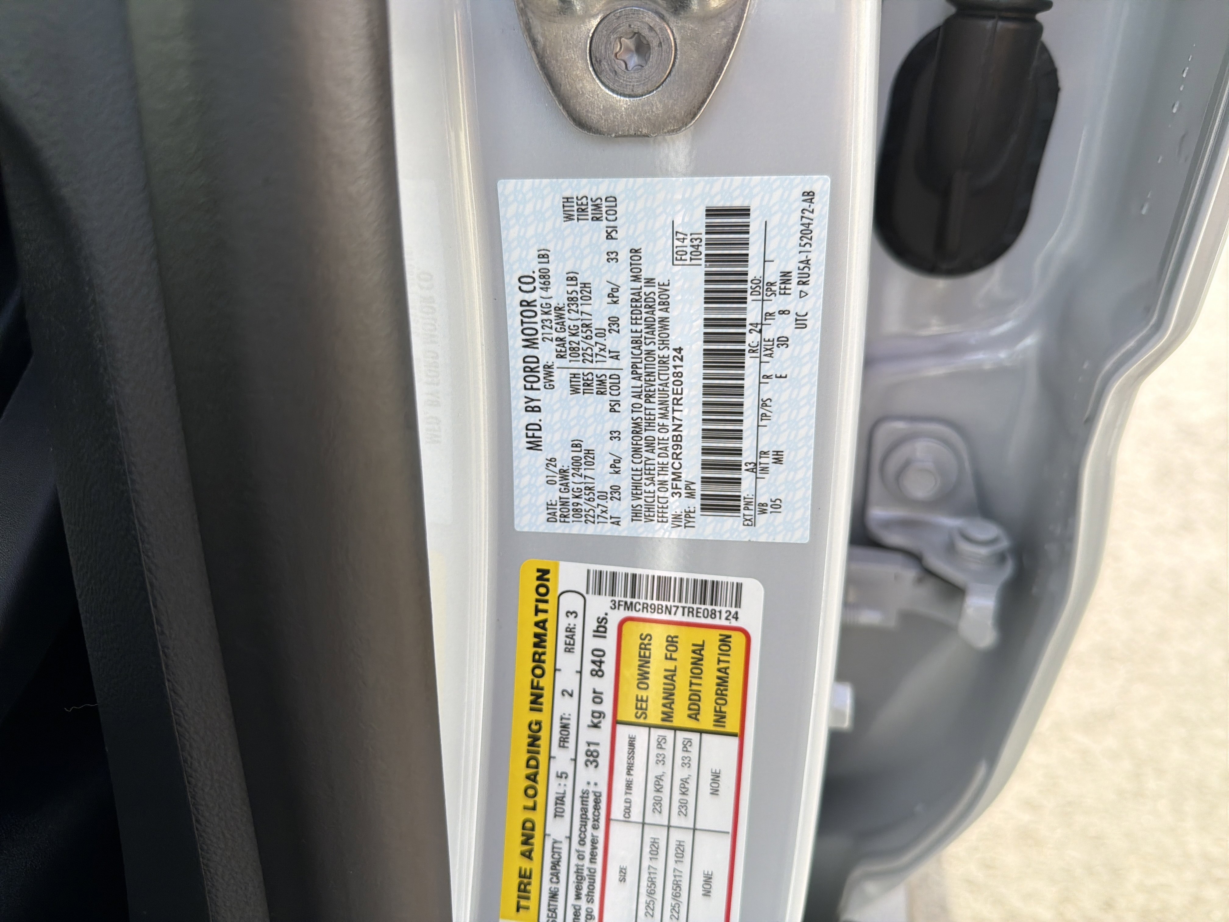 • VIN # 3FMCR9BN7TRE08124
