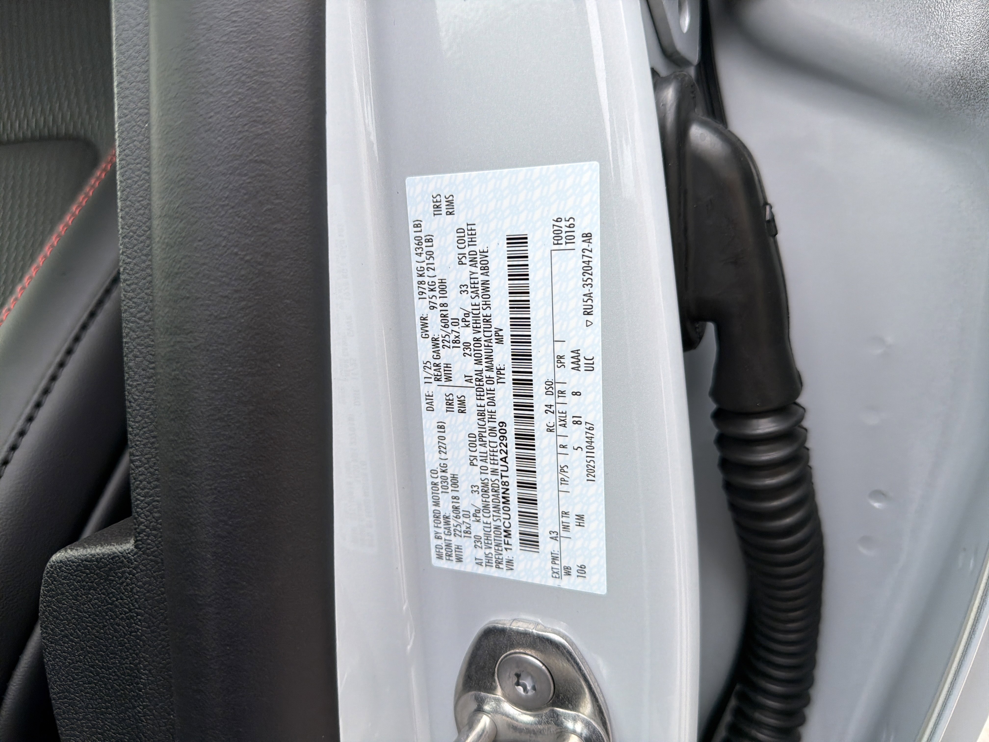 • VIN # 1FMCU0MN8TUA22909