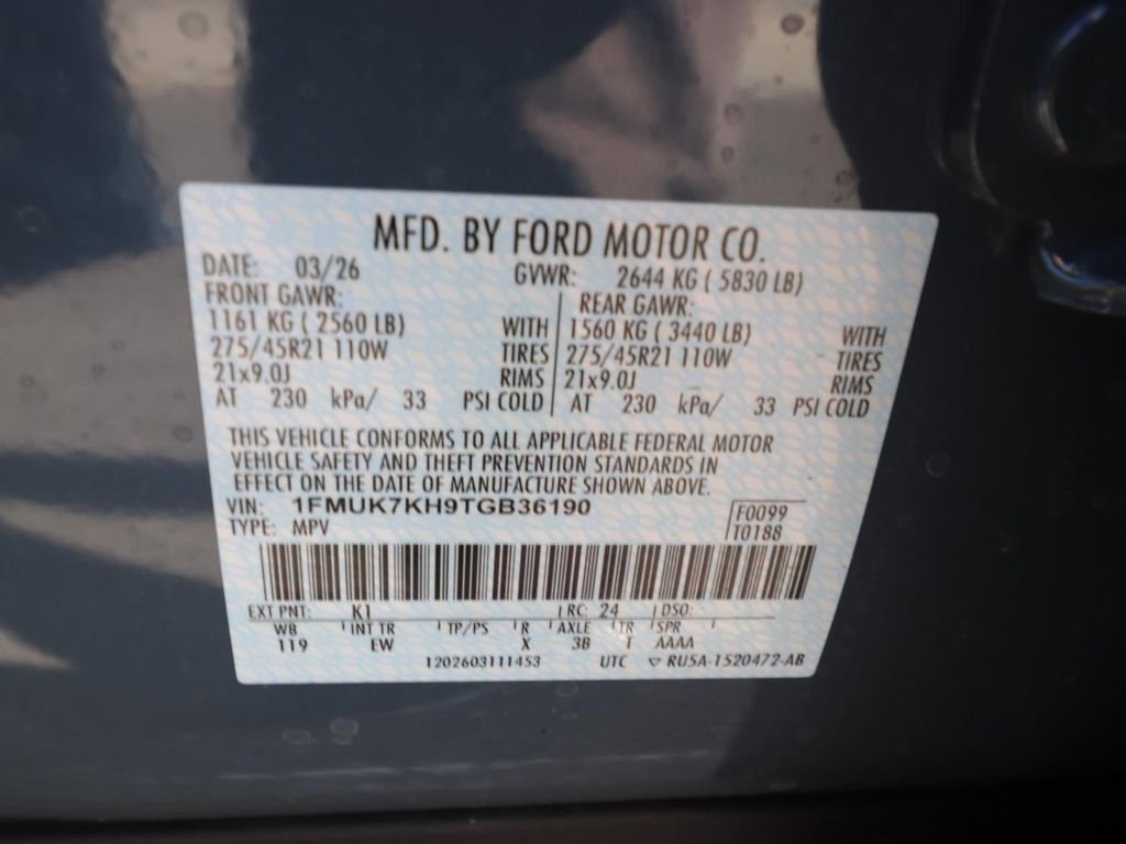 • VIN # 1FMUK7KH9TGB36190