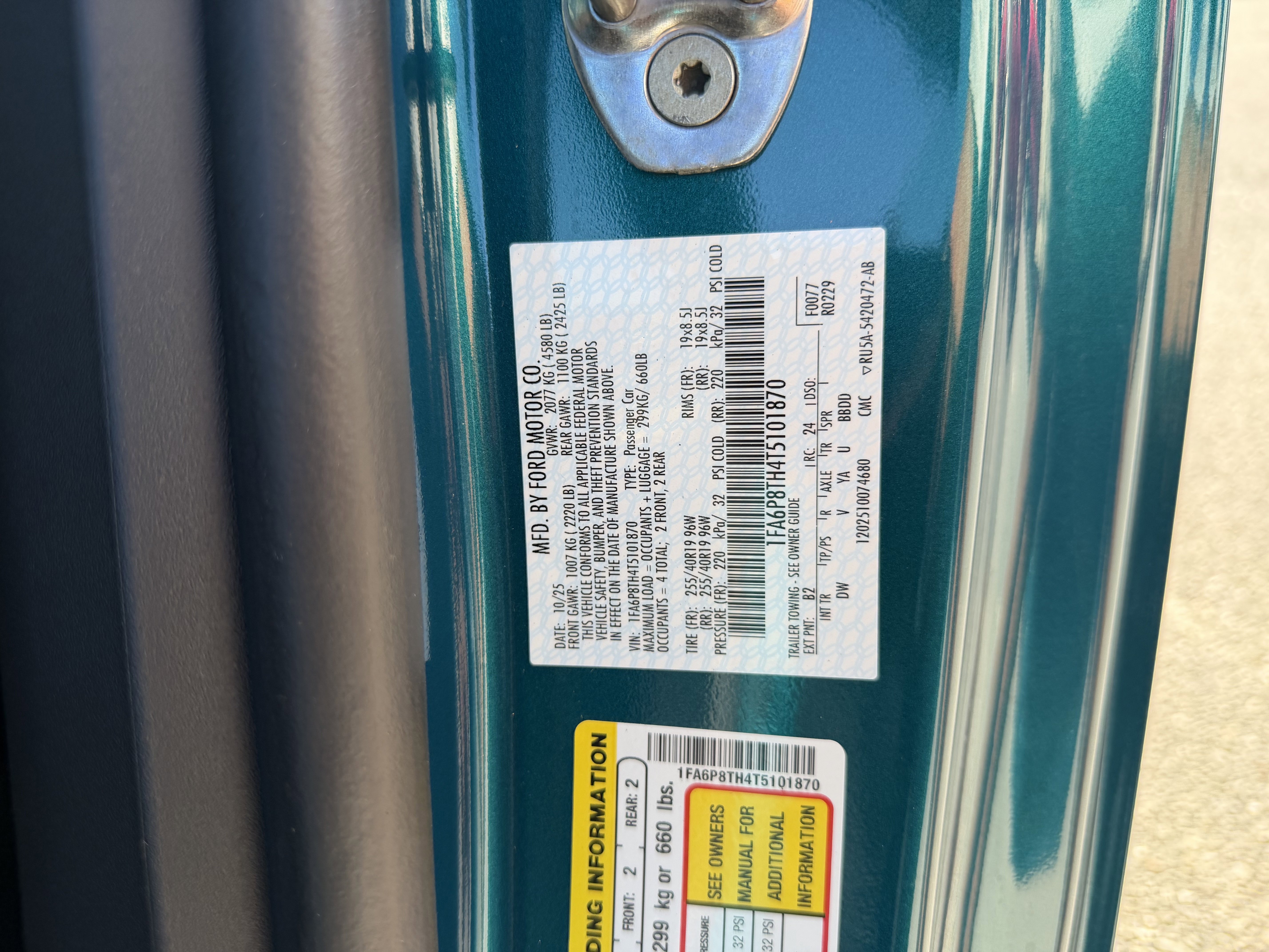 • VIN # 1FA6P8TH4T5101870