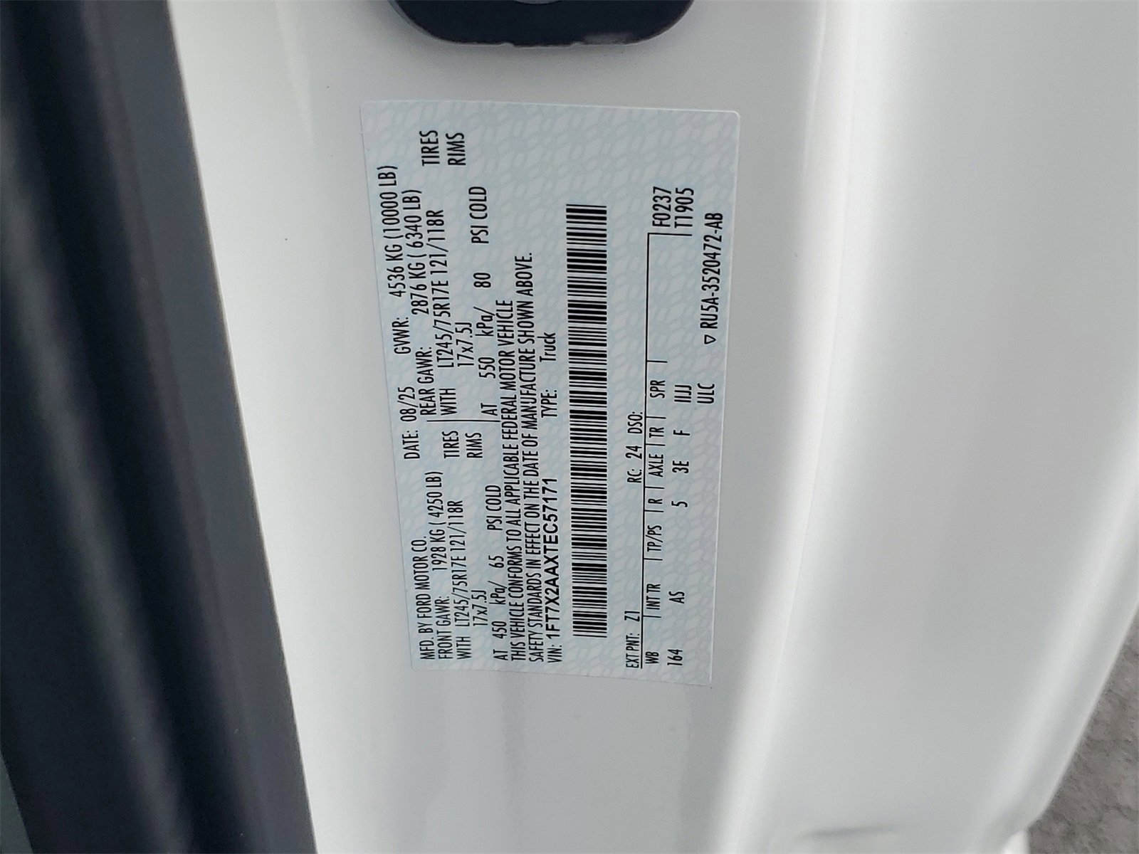 • VIN # 1FT7X2AAXTEC57171