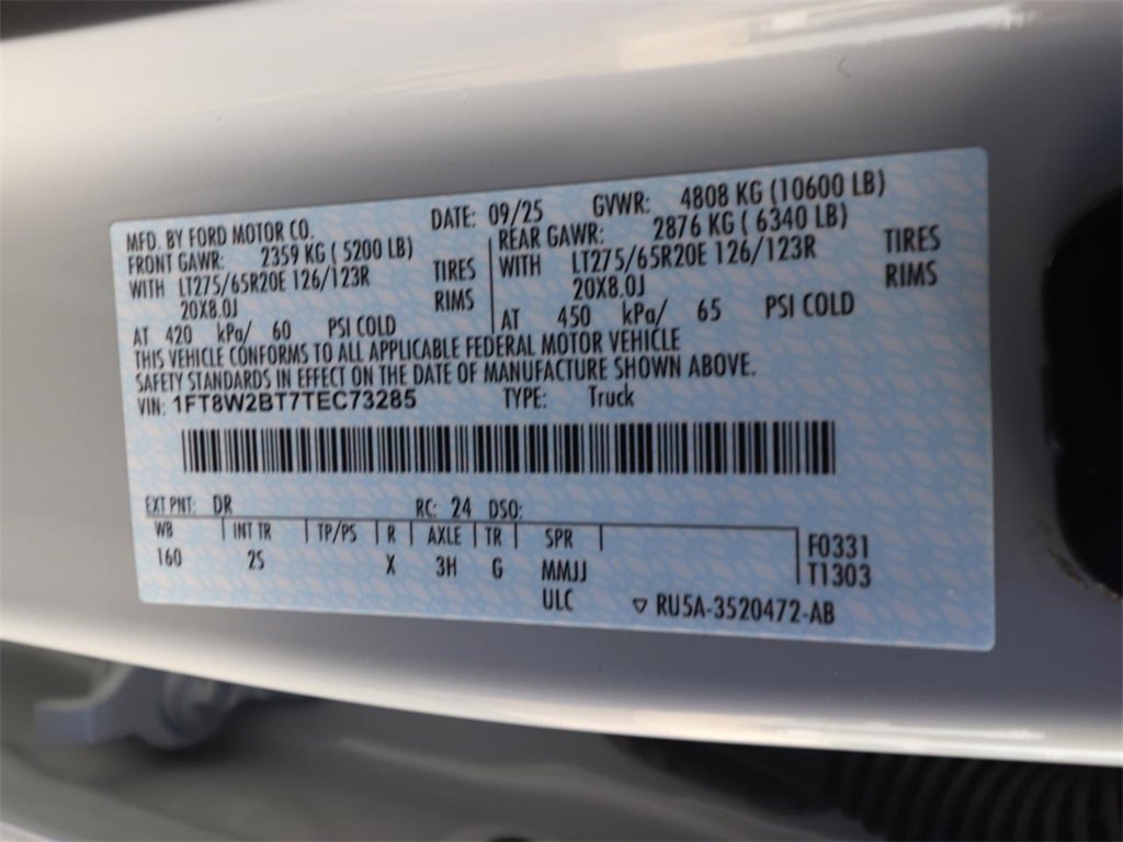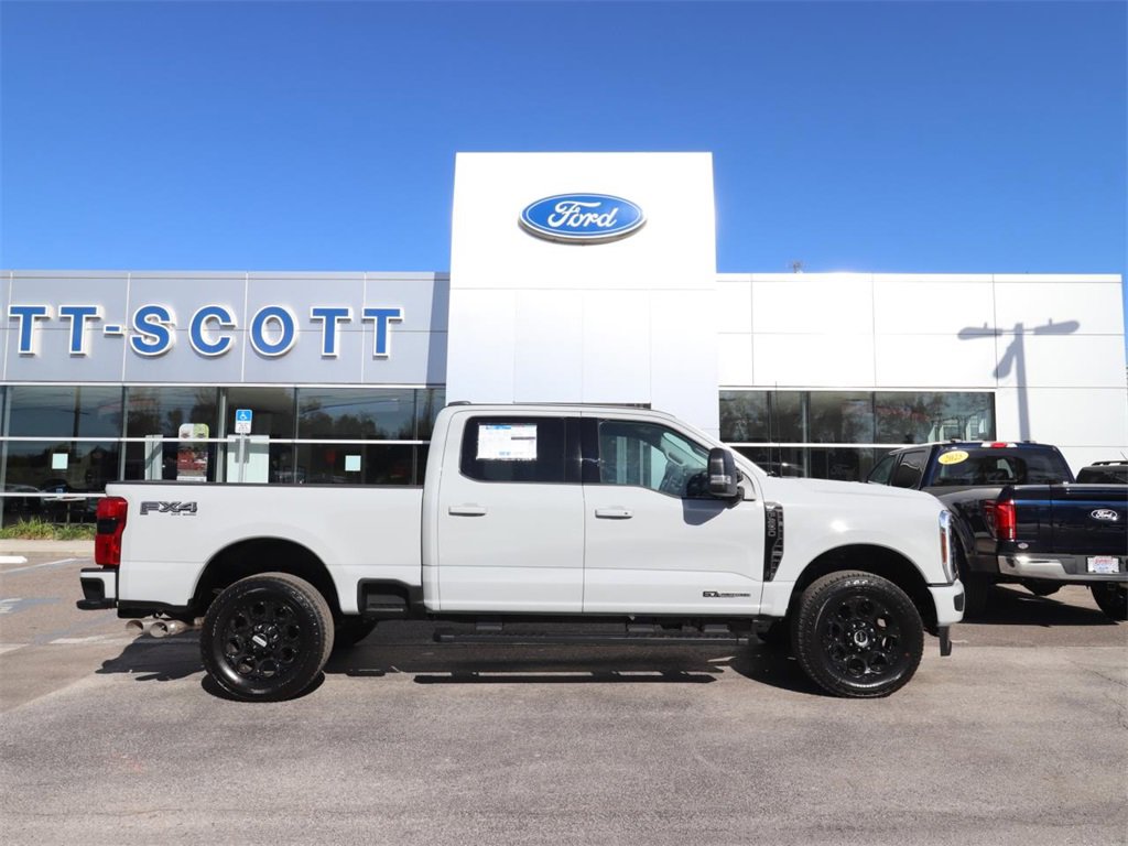 4WD, 360-Degree Camera, 360-Degree Camera Package, 5th Wheel/Gooseneck Hitch Prep Package, 6" Ebony Black Angular Running Boards, ABS brakes, Alloy wheels, Automatic High Beam, Black Appearance Package, Black Painted Front Grille Surround, BLIS w/Cross-Traffic Alert, Body Color Front & Rear Bumpers, Body-Color Door Handles, Bright Chrome Grille w/Chrome Inserts, Cloth 40/Console/40 Front Seats, Compass, Electrochromic Self-Dimming Rear-View Mirror, Electronic Stability Control, Electronic-Locking w/3.31 Axle Ratio, F-250 >10K GVWR Package, Fixed Rear Window w/Privacy Glass & Defrost, Flow-Through Console, Ford Connectivity Package (1-Year Included), FX4 Off-Road Package, Heated and Cooled front seats, Heated door mirrors, Hill Descent Control, Illuminated entry, Intelligent Access w/Push-Button Start, LED Box Lighting, LED Center High-Mounted Stop Lamp (CHMSL) Camera, LED Fog Lamps, Low tire pressure warning, Off-Road Specifically Tuned Shock Absorbers, Order Code 603A, Power-Sliding Rear-Window w/Defrost, PowerScope Trailer Tow Mirrors w/Heat, Privacy Glass, Radio: B&O Sound System by Bang & Olufsen, Rear Parking Sensors, Rear Wheel Well Liners (Pre-Installed), Remote keyless entry, Remote Start System, Remote Tailgate Release, SiriusXM w/360L, SiriusXM w/360L (3-Year Plan), SYNC 4 w/Enhanced Voice Recognition, Tailgate Step & Handle, Tough Bed Spray-In Bedliner, Traction control, Unique FX4 Off-Road Box Decal, Upfitter Switches (6), Wheels: 20" Ebony Black High Gloss, XLT Premium Package.