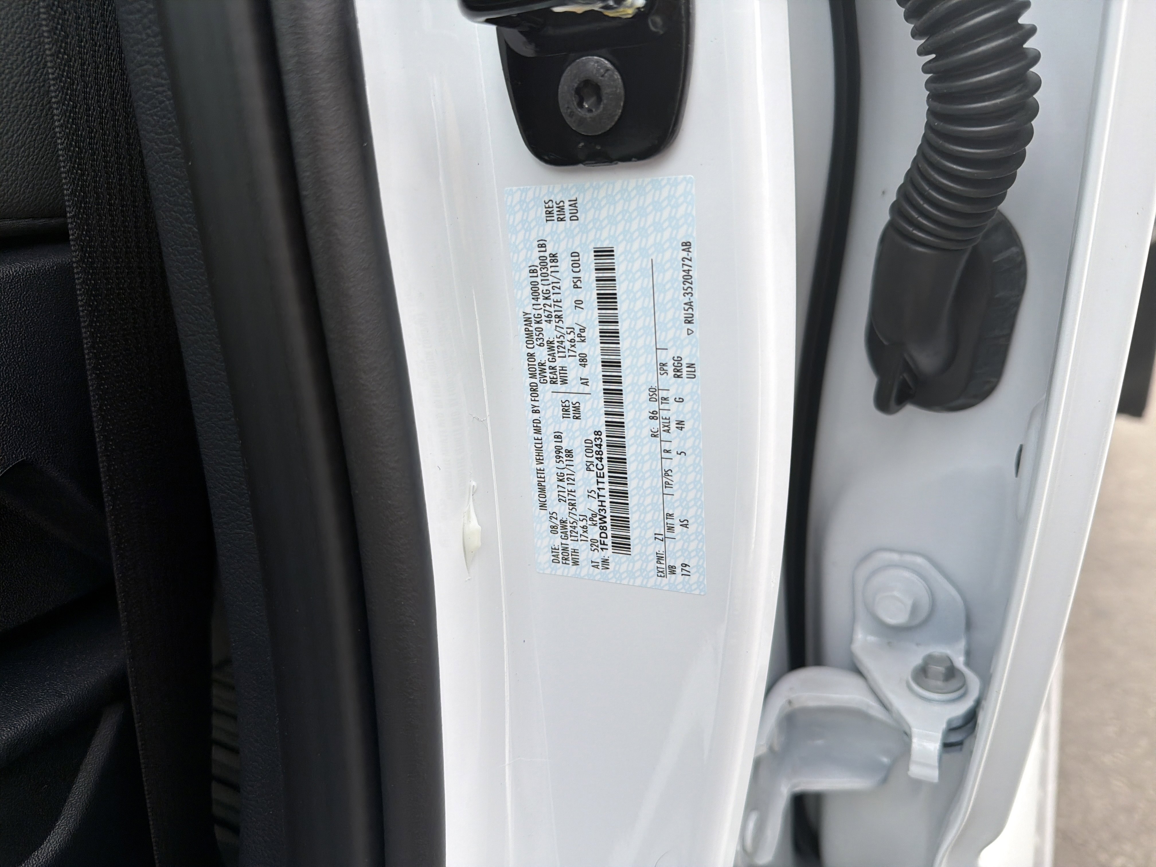 • VIN # 1FD8W3HT1TEC48438