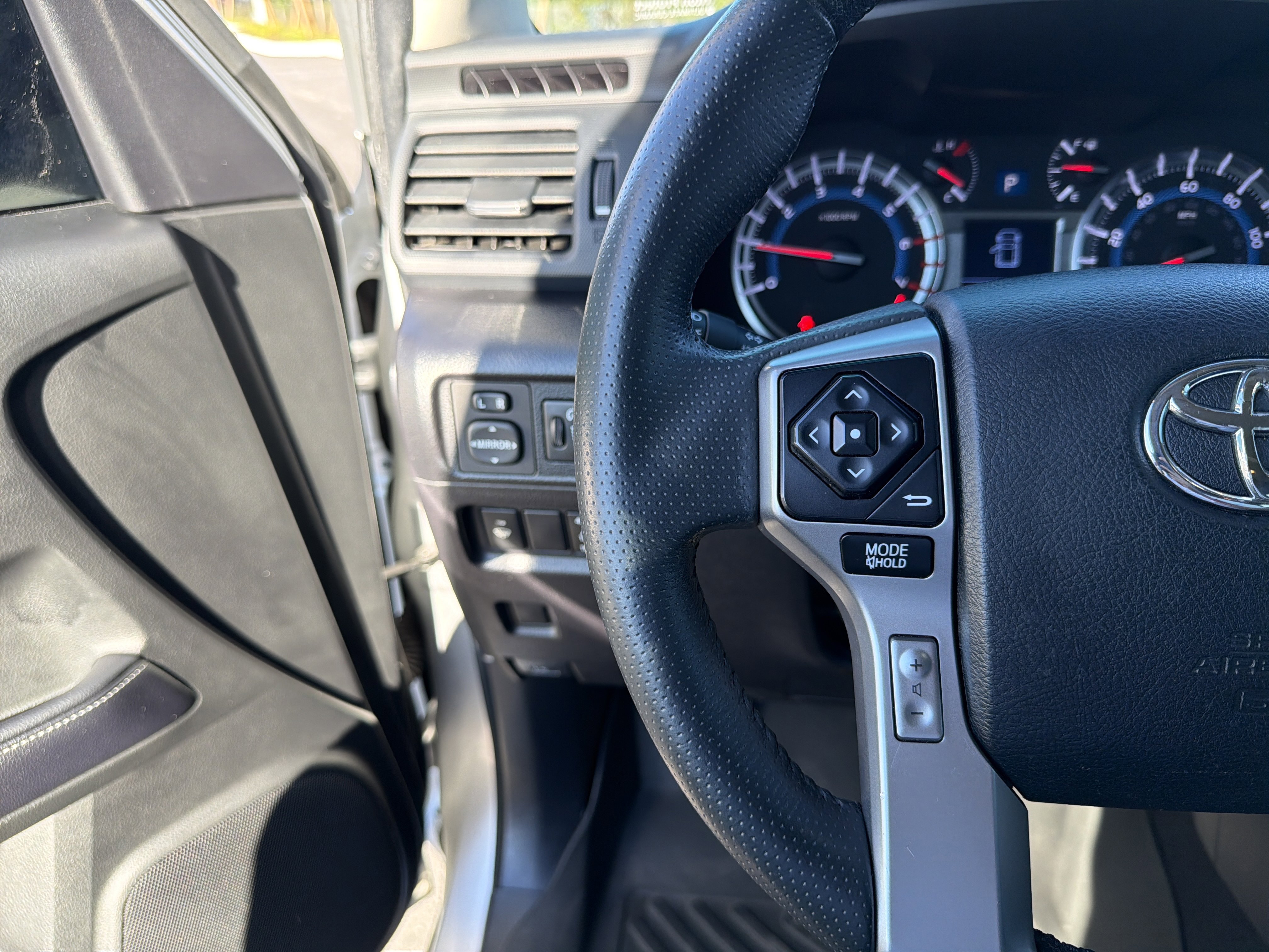 Silver 2019 Toyota 4Runner SR5 Premium 4WD 5-Speed Automatic with Overdrive 4.0L V6 SMPI DOHC ALLOY WHEELS, BACK UP CAMERA, BEST PRICE, BEST SELECTION!, BLUETOOTH, 4WD, Black Graphite w/Low Fabric Seat Trim, 17 x 7.0 6-Spoke Alloy Wheels, 3.727 Axle Ratio, 4-Wheel Disc Brakes, 8 Speakers, ABS brakes, Air Conditioning, Alloy wheels, AM/FM radio: SiriusXM, Anti-whiplash front head restraints, Auto-Dimming Rear-View Mirror, Auto-dimming Rear-View mirror, Body Color Heated Mirrors, Brake assist, Bumpers: body-color, CD player, Compass, Driver door bin, Driver vanity mirror, Dual front impact airbags, Dual front side impact airbags, Electronic Stability Control, Emergency communication system: Safety Connect, Exterior Parking Camera Rear, Front anti-roll bar, Front Bucket Seats, Front Center Armrest, Front fog lights, Front reading lights, Front wheel independent suspension, Garage Door Opener, Garage door transmitter: HomeLink, Heated door mirrors, Heated Front Bucket Seats, Heated front seats, Illuminated entry, Knee airbag, Leather Shift Knob, Leather steering wheel, Low tire pressure warning, Occupant sensing airbag, Outside temperature display, Overhead airbag, Overhead console, Panic alarm, Passenger door bin, Passenger vanity mirror, Power door mirrors, Power driver seat, Power passenger seat, Power steering, Power windows, Radio: Entune Premium Audio w/Navigation, Rear anti-roll bar, Rear seat center armrest, Rear window defroster, Rear window wiper, Remote keyless entry, Roof rack: rails only, Security system, Softex Synthetic Leather Seat Trim, Speed control, Speed-sensing steering, Split folding rear seat, Spoiler, Steering wheel mounted audio controls, Tachometer, Telescoping steering wheel, Tilt steering wheel, Traction control, Trip computer, Turn signal indicator mirrors, Variably intermittent wipers.