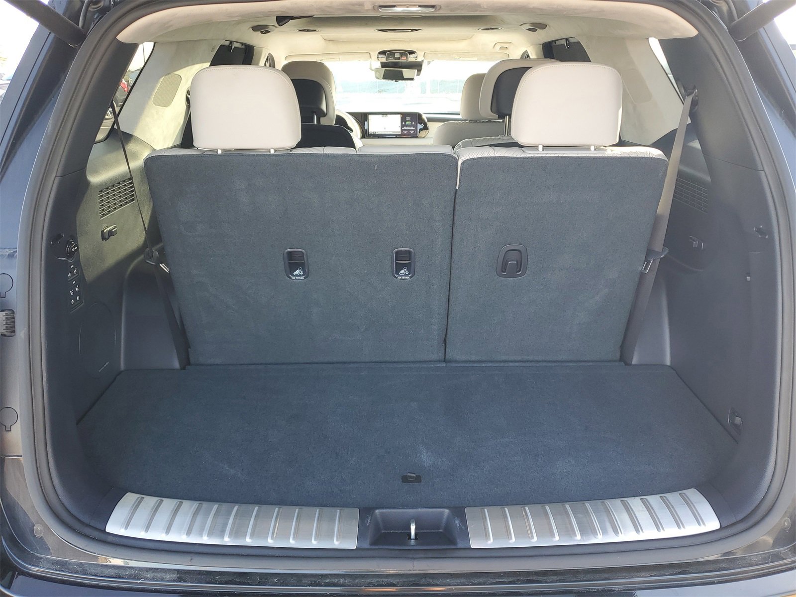 BALANCE OF FACTORY WARRANTY, 12 Speakers, 3.648 Axle Ratio, 3rd row seats: split-bench, 4-Wheel Disc Brakes, ABS brakes, Air Conditioning, Alloy wheels, AM/FM radio: SiriusXM, Apple CarPlay & Android Auto, Auto High-beam Headlights, Auto-dimming door mirrors, Auto-dimming Rear-View mirror, Auto-leveling suspension, Automatic temperature control, Brake assist, Bumpers: body-color, Cargo Cover/Screen, Carpeted Floor Mats, Compass, Delay-off headlights, Driver door bin, Driver vanity mirror, Dual front impact airbags, Dual front side impact airbags, Electronic Stability Control, Emergency communication system, Exterior Parking Camera Rear, First Aid Kit, Four wheel independent suspension, Front anti-roll bar, Front Bucket Seats, Front Center Armrest, Front dual zone A/C, Front reading lights, Fully automatic headlights, Garage door transmitter: HomeLink, harman/kardon® Speakers, Heads-Up Display, Heated & Ventilated Front Bucket Seats, Heated door mirrors, Heated front seats, Heated rear seats, Heated steering wheel, Illuminated entry, Knee airbag, Low tire pressure warning, Memory seat, Navigation System, Occupant sensing airbag, Option Group 01, Outside temperature display, Overhead airbag, Overhead console, Panic alarm, Passenger door bin, Passenger vanity mirror, Power door mirrors, Power driver seat, Power Liftgate, Power moonroof, Power passenger seat, Power steering, Power windows, Premium Nappa Leather Seat Trim, Radio data system, Radio: AM/FM/MP3 Premium Audio System, Rain sensing wipers, Rear air conditioning, Rear anti-roll bar, Rear audio controls, Rear reading lights, Rear side impact airbag, Rear window defroster, Rear window wiper, Reclining 3rd row seat, Remote keyless entry, Roof Rack Cross Rails, Security system, Speed control, Speed-sensing steering, Split folding rear seat, Spoiler, Steering wheel mounted audio controls, Tachometer, Telescoping steering wheel, Tilt steering wheel, Traction control, Trip computer, Turn signal indicator mirrors, Variably intermittent wipers, Ventilated front seats, Ventilated rear seats, Wheels: 20 x 7.5J Calligraphy Exclusive Alloy.