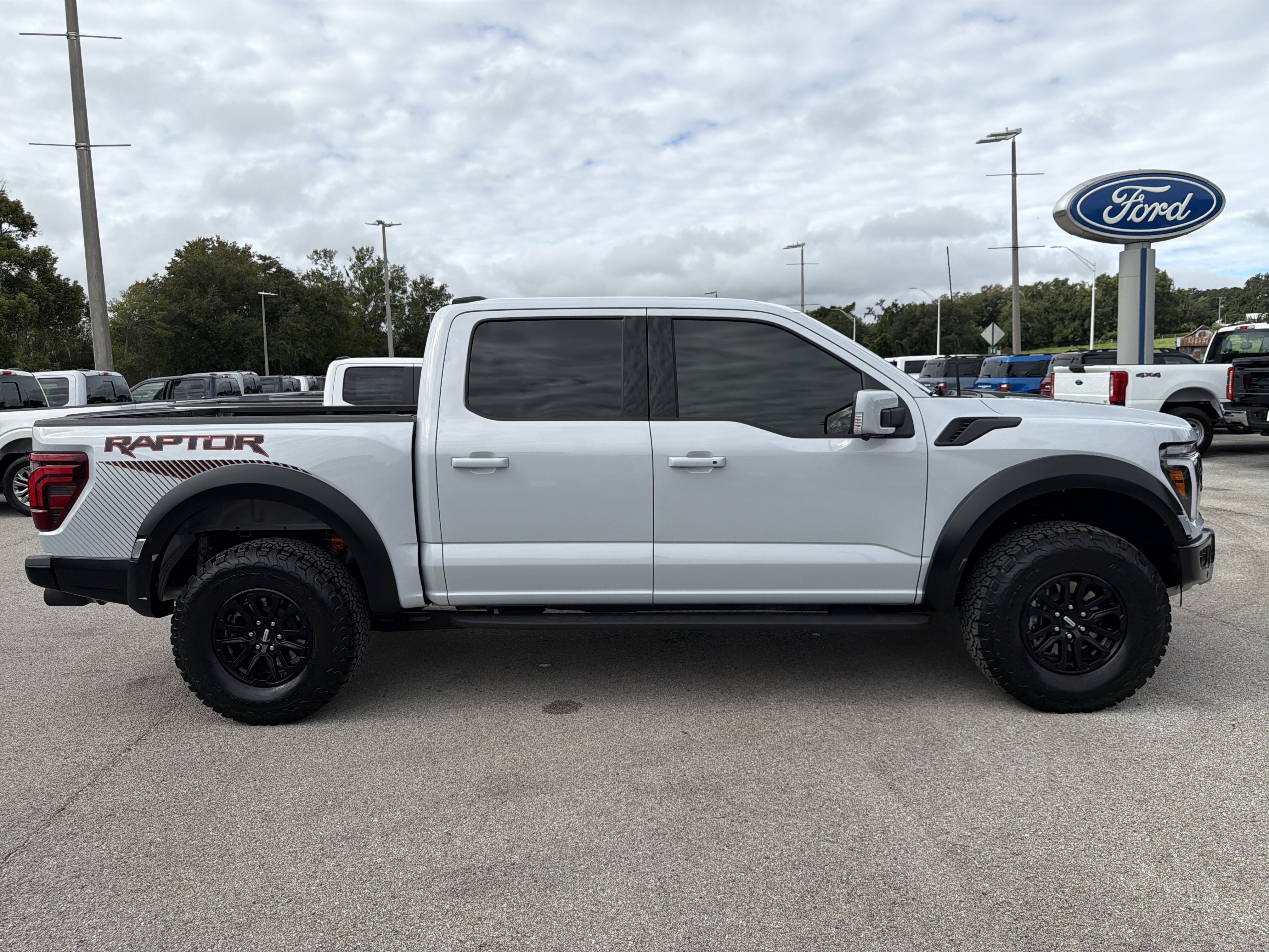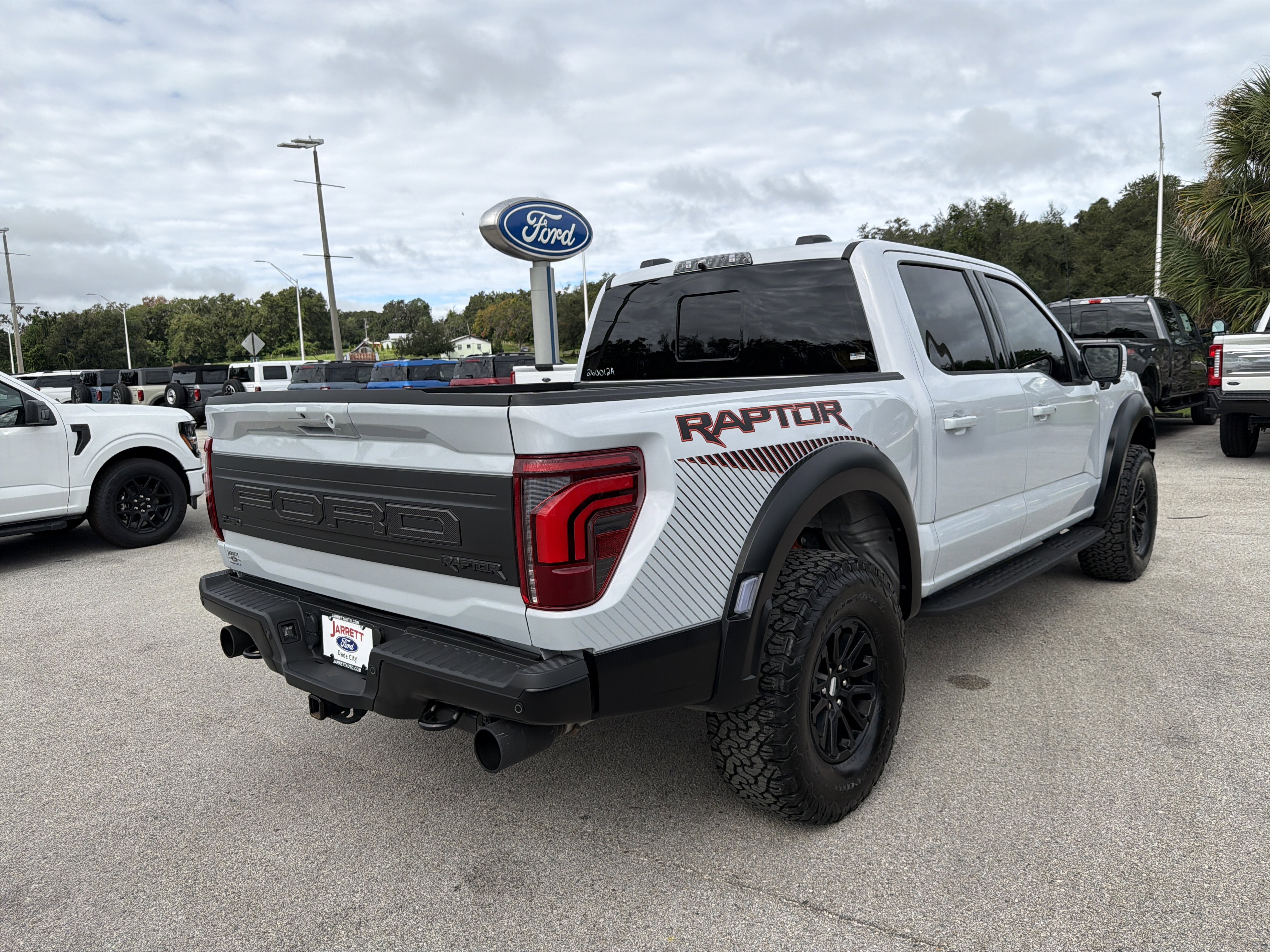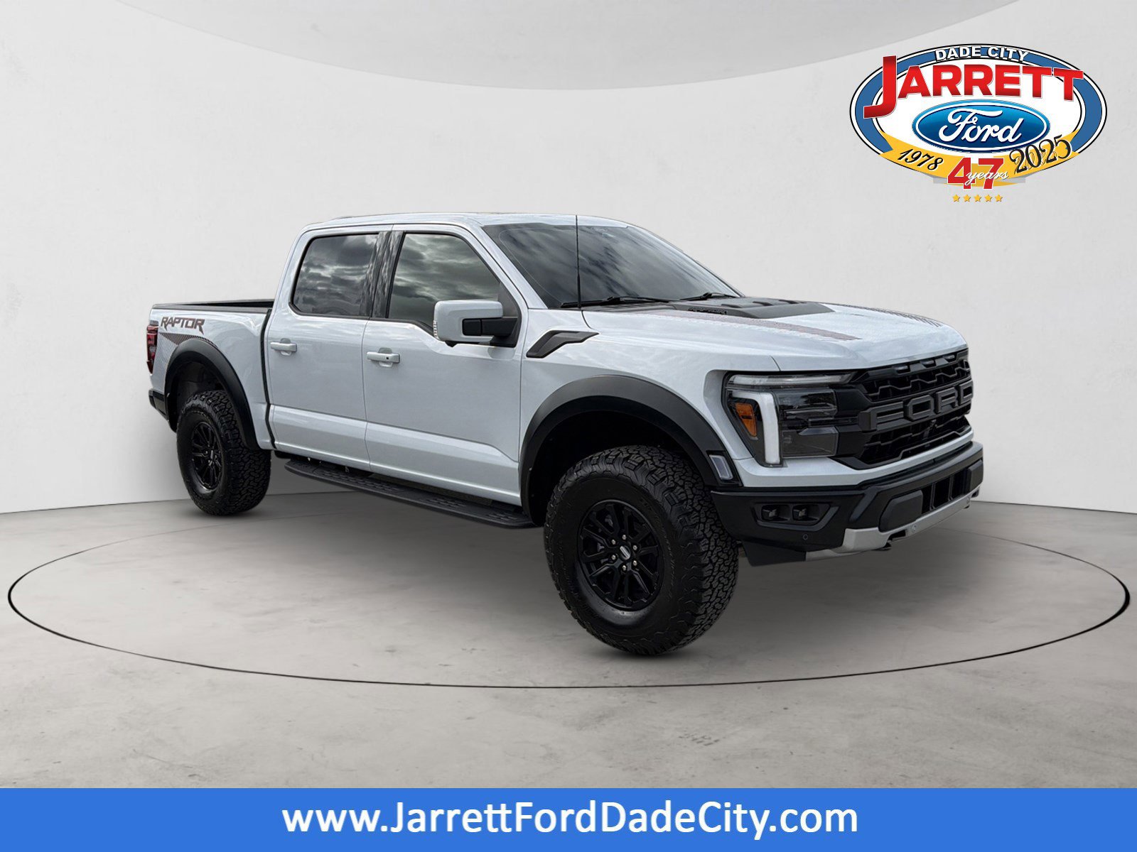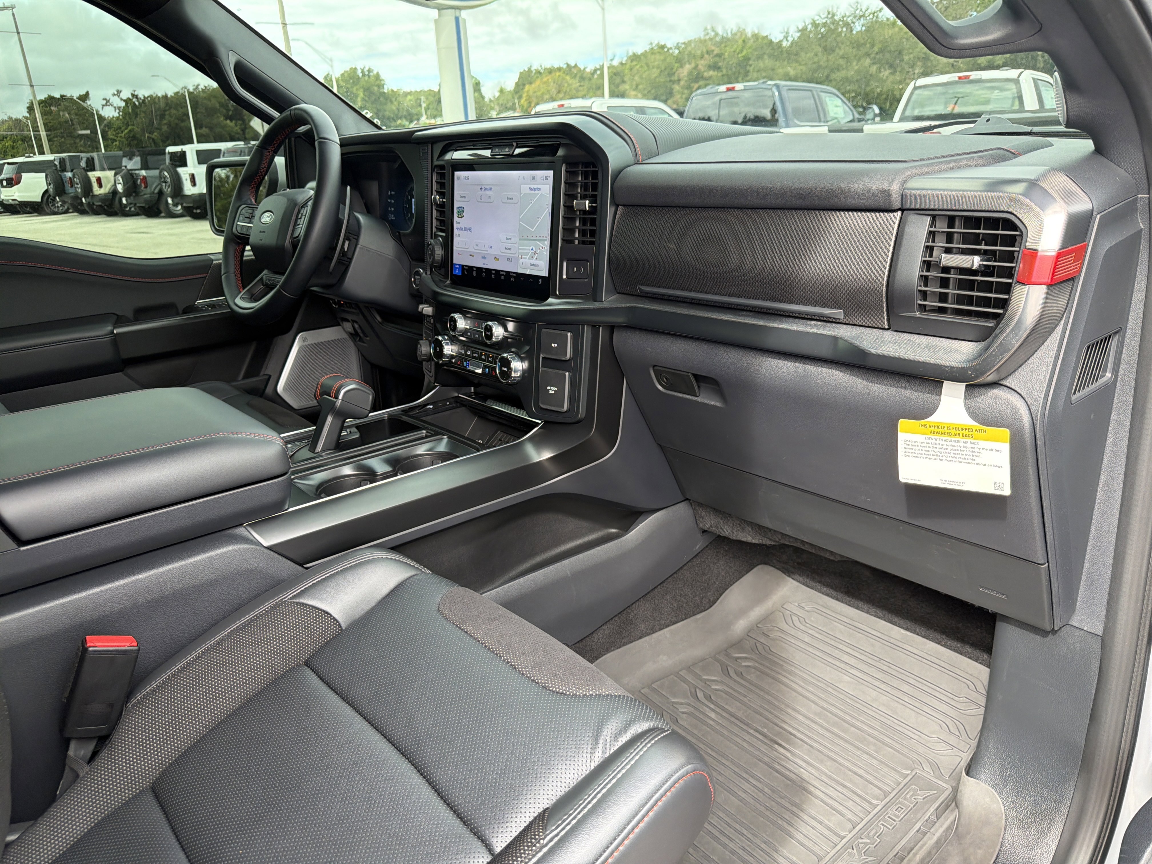 Certified. White 2025 Ford F-150 Raptor 4WD 10-Speed Automatic 3.5L V6 EcoBoost ALLOY WHEELS, BACK UP CAMERA, BEST PRICE, BEST SELECTION!, BLUETOOTH, ECOBOOST POWER, 4WD, 14 Speakers, 4-Wheel Disc Brakes, ABS brakes, Adjustable pedals, Air Conditioning, Alloy wheels, AM/FM radio: SiriusXM with 360L, Auto High-beam Headlights, Auto tilt-away steering wheel, Auto-dimming door mirrors, Auto-dimming Rear-View mirror, Automatic temperature control, Brake assist, Bumpers: body-color, Compass, Delay-off headlights, Driver door bin, Driver vanity mirror, Dual front impact airbags, Dual front side impact airbags, Electronic Locking w/4.10 Axle Ratio, Electronic Stability Control, Emergency communication system: SYNC 4 911 Assist, Equipment Group 801A Standard, Front anti-roll bar, Front Bucket Seats, Front Center Armrest, Front dual zone A/C, Front fog lights, Front reading lights, Front wheel independent suspension, Fully automatic headlights, Garage door transmitter, Heads-Up Display, Heated door mirrors, Heated front seats, Heated rear seats, Heated steering wheel, Illuminated entry, Lane Departure Warning System, Leather steering wheel, Leather Trimmed Seats, Low tire pressure warning, Memory seat, Navigation system: Connected Navigation, Occupant sensing airbag, Outside temperature display, Overhead airbag, Overhead console, Panic alarm, Passenger door bin, Passenger vanity mirror, Pedal memory, Power door mirrors, Power driver seat, Power passenger seat, Power steering, Power windows, Radio data system, Radio: B&O Unleashed Sound System by Bang & Olufsen, Rain sensing wipers, Rear reading lights, Rear step bumper, Rear window defroster, Remote keyless entry, Security system, Speed control, Speed-sensing steering, Split folding rear seat, Steering wheel memory, Steering wheel mounted audio controls, SYNC 4 w/Enhanced Voice Recognition, Tachometer, Telescoping steering wheel, Tilt steering wheel, Traction control, Trip computer, Variably intermittent wipers, Ventilated front seats, Wheels: Raptor 37 Unique 17 Cast Aluminum.