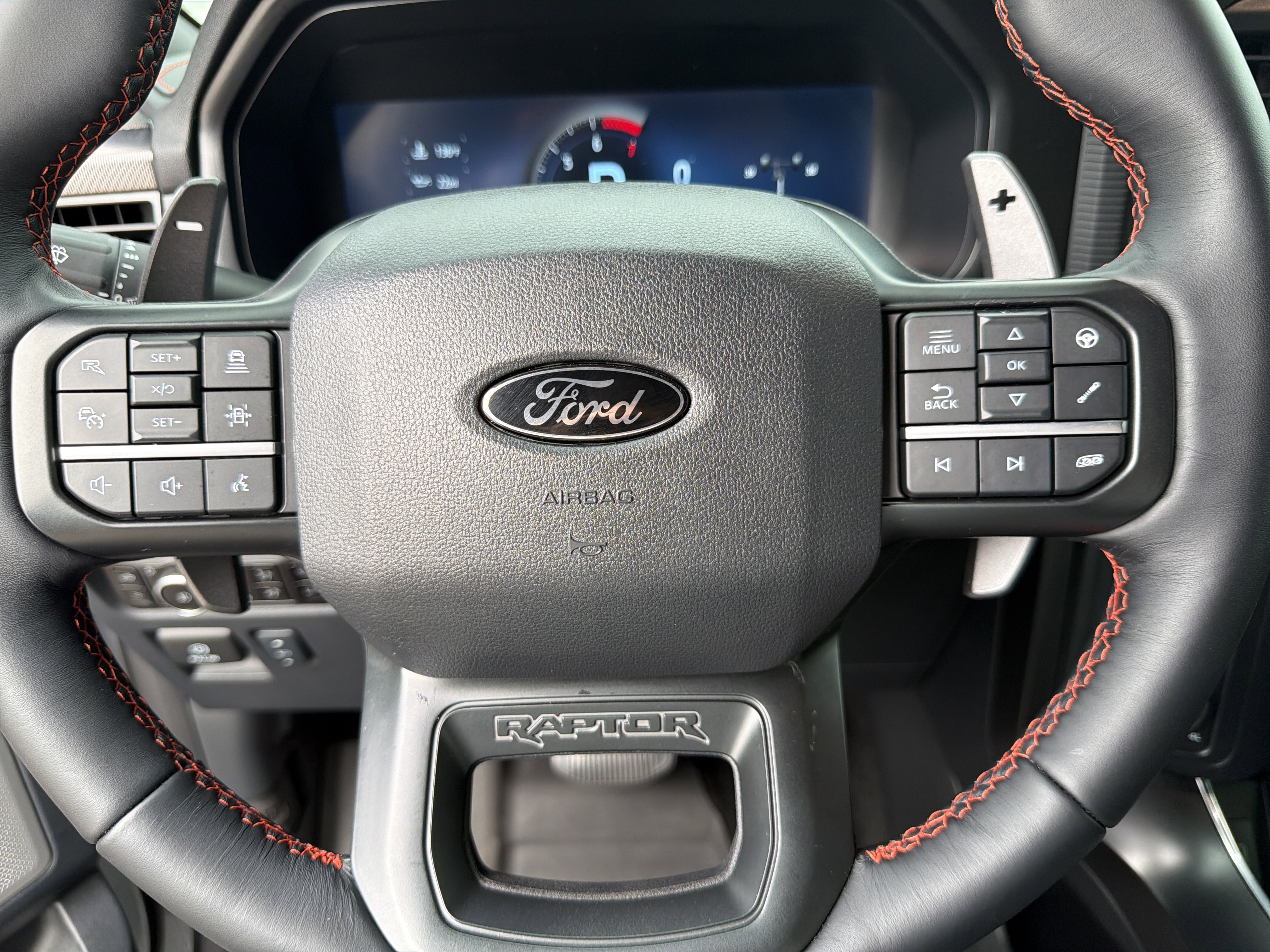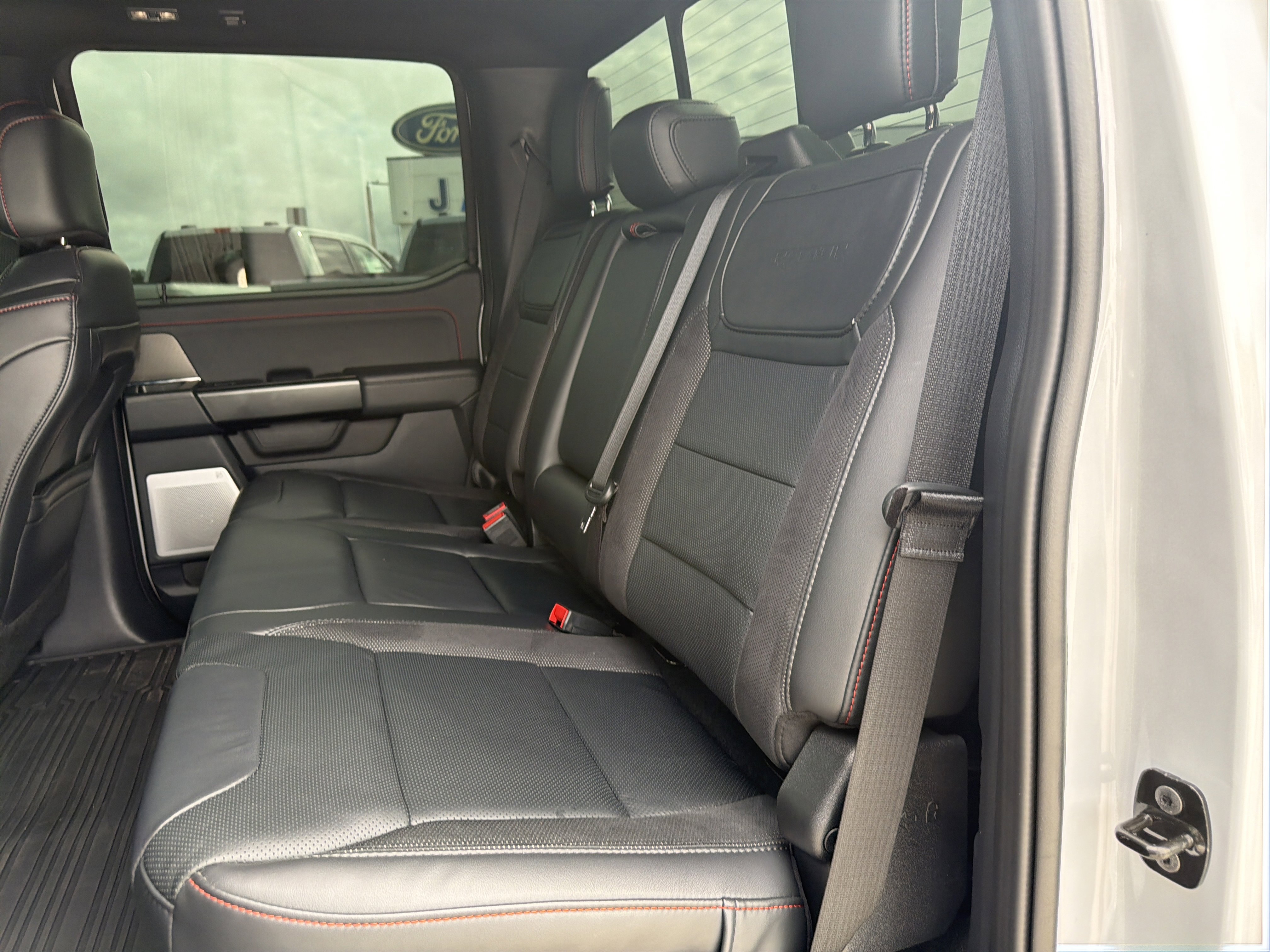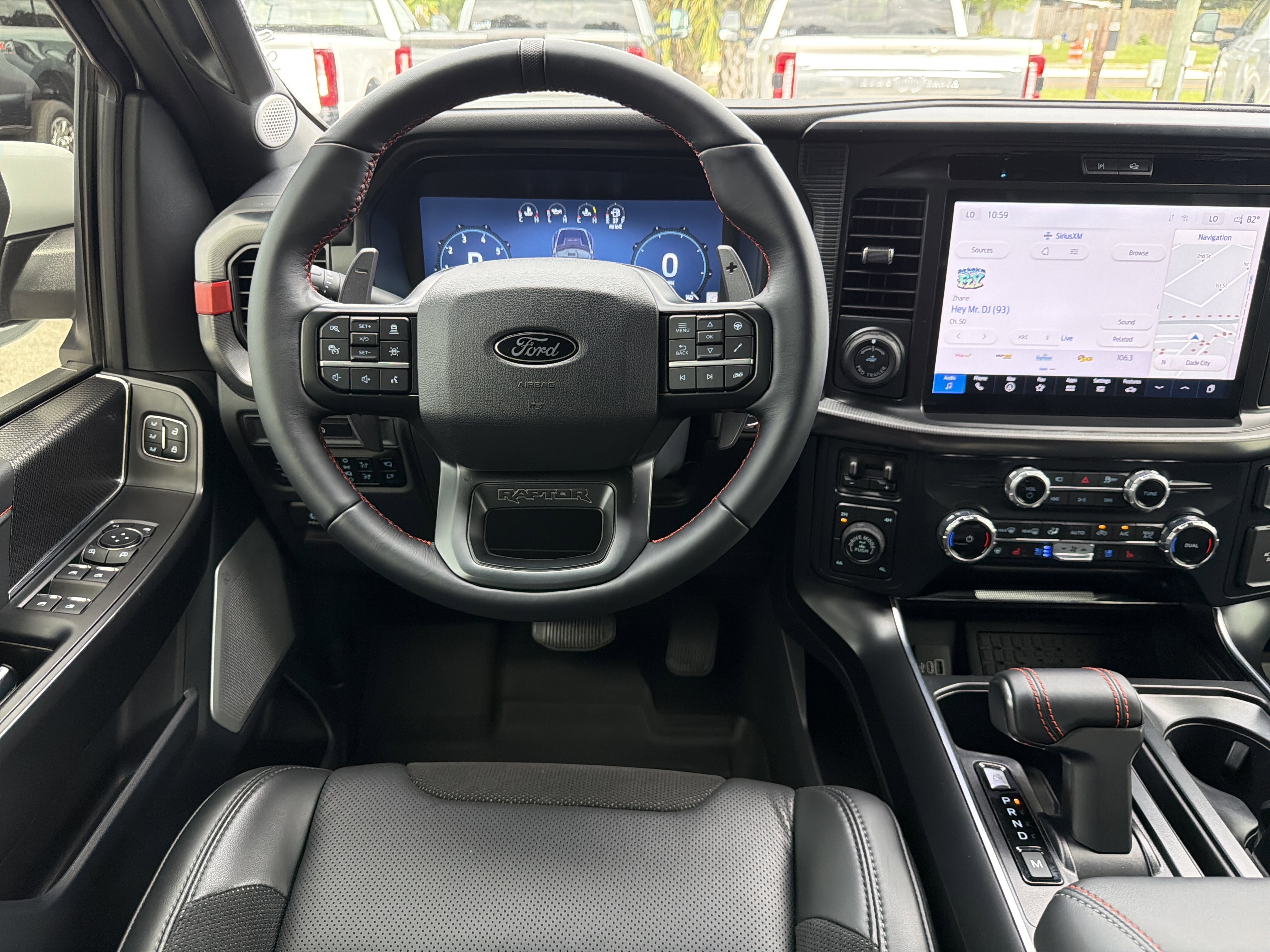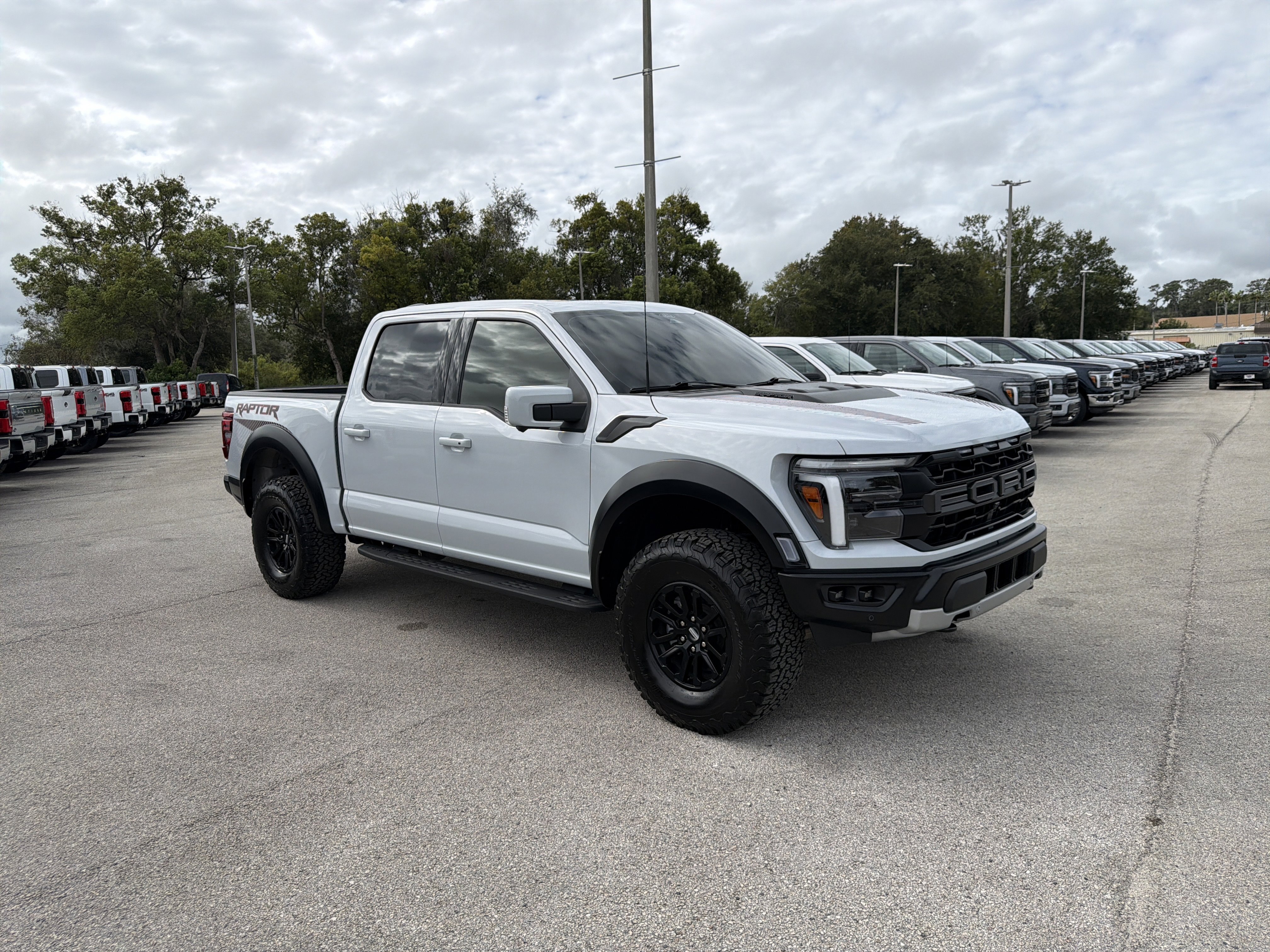 Certified. White 2025 Ford F-150 Raptor 4WD 10-Speed Automatic 3.5L V6 EcoBoost ALLOY WHEELS, BACK UP CAMERA, BEST PRICE, BEST SELECTION!, BLUETOOTH, ECOBOOST POWER, 4WD, 14 Speakers, 4-Wheel Disc Brakes, ABS brakes, Adjustable pedals, Air Conditioning, Alloy wheels, AM/FM radio: SiriusXM with 360L, Auto High-beam Headlights, Auto tilt-away steering wheel, Auto-dimming door mirrors, Auto-dimming Rear-View mirror, Automatic temperature control, Brake assist, Bumpers: body-color, Compass, Delay-off headlights, Driver door bin, Driver vanity mirror, Dual front impact airbags, Dual front side impact airbags, Electronic Locking w/4.10 Axle Ratio, Electronic Stability Control, Emergency communication system: SYNC 4 911 Assist, Equipment Group 801A Standard, Front anti-roll bar, Front Bucket Seats, Front Center Armrest, Front dual zone A/C, Front fog lights, Front reading lights, Front wheel independent suspension, Fully automatic headlights, Garage door transmitter, Heads-Up Display, Heated door mirrors, Heated front seats, Heated rear seats, Heated steering wheel, Illuminated entry, Lane Departure Warning System, Leather steering wheel, Leather Trimmed Seats, Low tire pressure warning, Memory seat, Navigation system: Connected Navigation, Occupant sensing airbag, Outside temperature display, Overhead airbag, Overhead console, Panic alarm, Passenger door bin, Passenger vanity mirror, Pedal memory, Power door mirrors, Power driver seat, Power passenger seat, Power steering, Power windows, Radio data system, Radio: B&O Unleashed Sound System by Bang & Olufsen, Rain sensing wipers, Rear reading lights, Rear step bumper, Rear window defroster, Remote keyless entry, Security system, Speed control, Speed-sensing steering, Split folding rear seat, Steering wheel memory, Steering wheel mounted audio controls, SYNC 4 w/Enhanced Voice Recognition, Tachometer, Telescoping steering wheel, Tilt steering wheel, Traction control, Trip computer, Variably intermittent wipers, Ventilated front seats, Wheels: Raptor 37 Unique 17 Cast Aluminum.